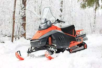 Снегоход комплектуется двухпозиционным подогревом ручек руля и курка газа, розеткой для внешних приборов 12V, электронной многорежимной панелью приборов, системой аварийного глушения двигателя, системой ручного запуска двигателя, гидравлическим дисковым тормозом с функцией стояночного тормоза. Большое комфортное сиденье с подседельным кофром объемом 42 литра.